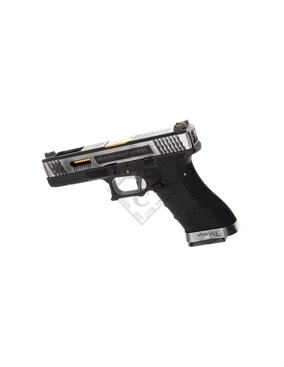 Une édition custom signé WE avec une culasse et un design peu commun et un canon externe couleur Gold .