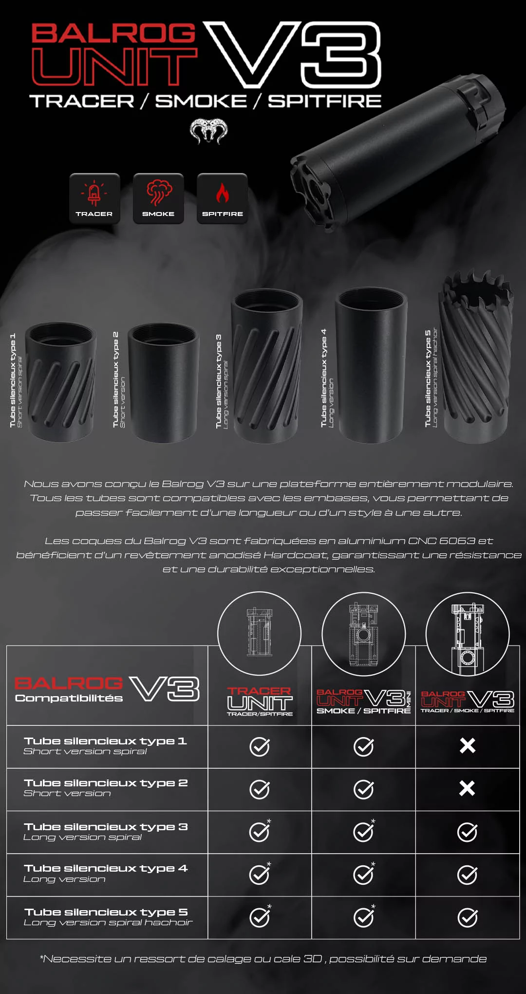 TUBE LONG SILENCIEUX BALROG V3 TRACER SMOKE - AAC CUSTOM